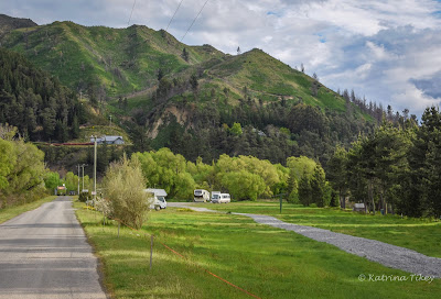 The NZMCA park is the first turn on the right after The Hanmer Bridge. It's a lovely spot, with lots of room and the park is fringed with lush, green, willow trees.