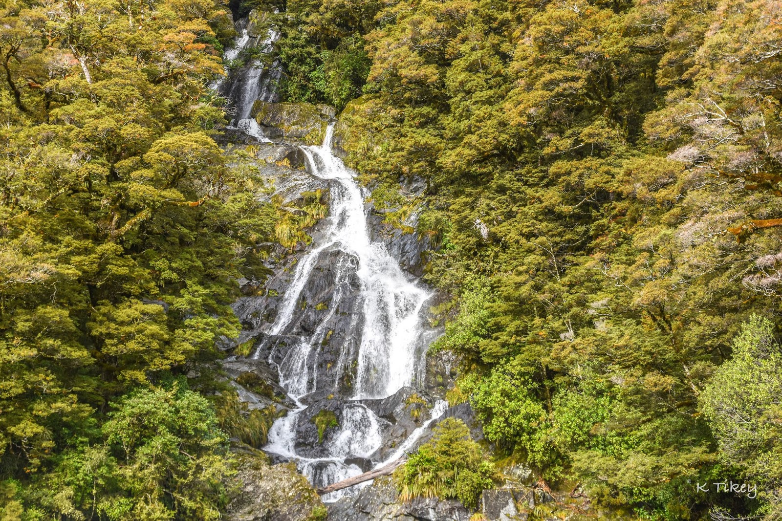 'Haast Pass-Makaroa Road' has several short walks to waterfalls, but we only stopped at Fantail Falls. DOC has provided lots of room to park and the walk to the waterfall, only took a couple of minutes. Fantail Falls (a 23 metre waterfall), is fed by Fantail Creek and falls in the Haast River. There's an information board, which explains the area's history and how the road was made.